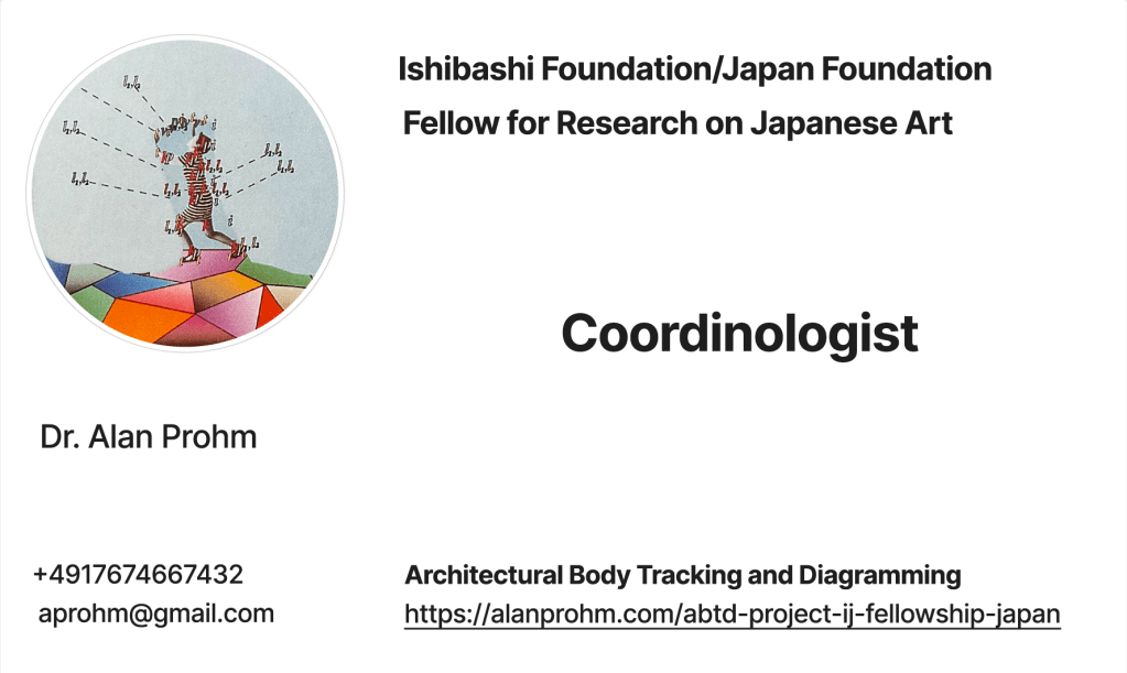 The Studies of the Architectural Body Research Group at the Institute of Oriental and Occidental Studies of Kansai University is a leading site of investigation and innovation around the study of Arakawa and Madeline Gins‘ oeuvre. The conference AGxKansai in March 2022 brought together the largest and most encompassing community of researchers so far around the work of Arakawa and Gins at venues in Kyoto and through a full virtual event program online. The current program of the Research Group involves concrete construction and testing of units of procedural architecture. The opportunity for highly constructive exchange on the theoretical and methodological bases for evaluative and testing procedures makes this an essential element of the content for research during this fellowship.