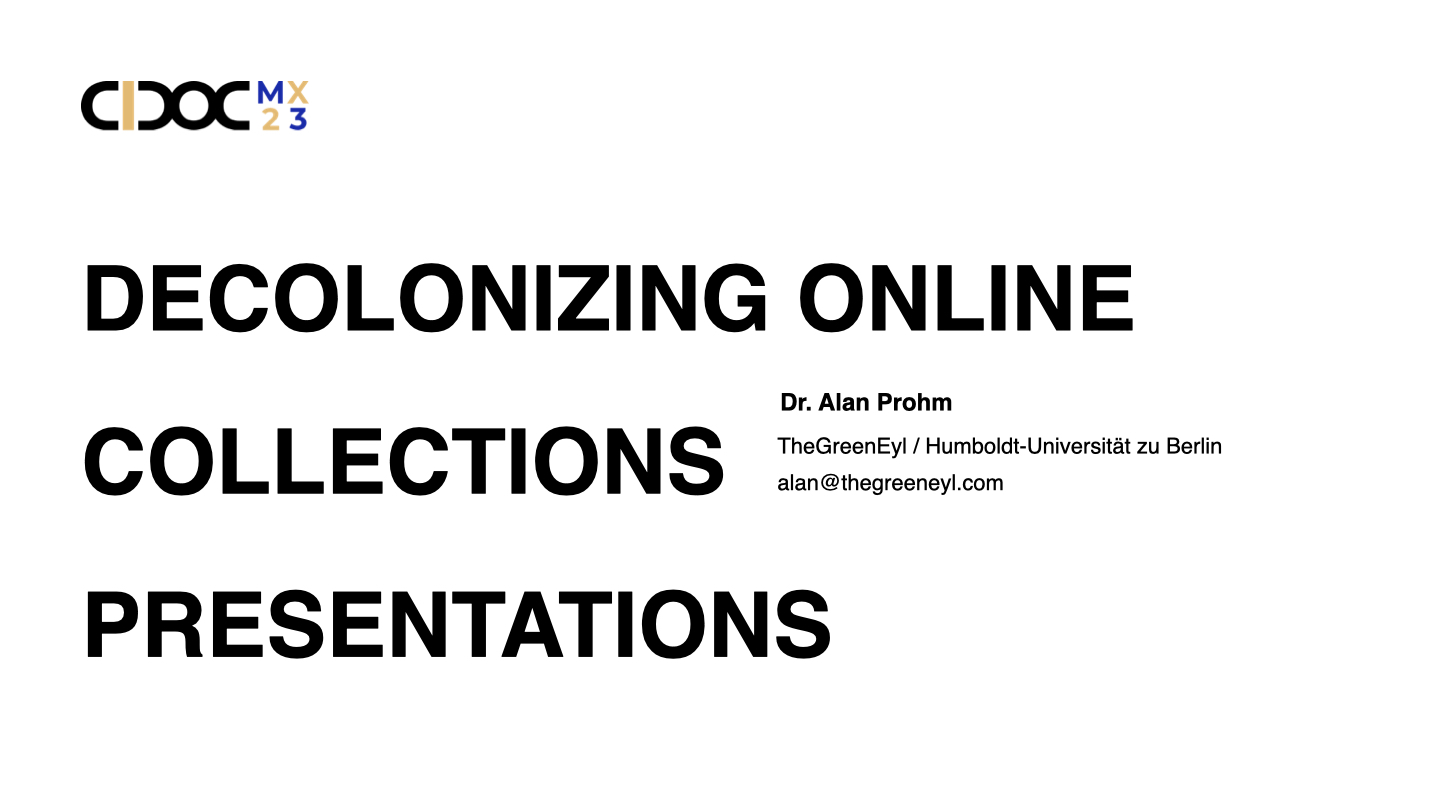 Paper: “Decolonizing Online Collections Presentations” Dr. Alan Prohm – Berlin