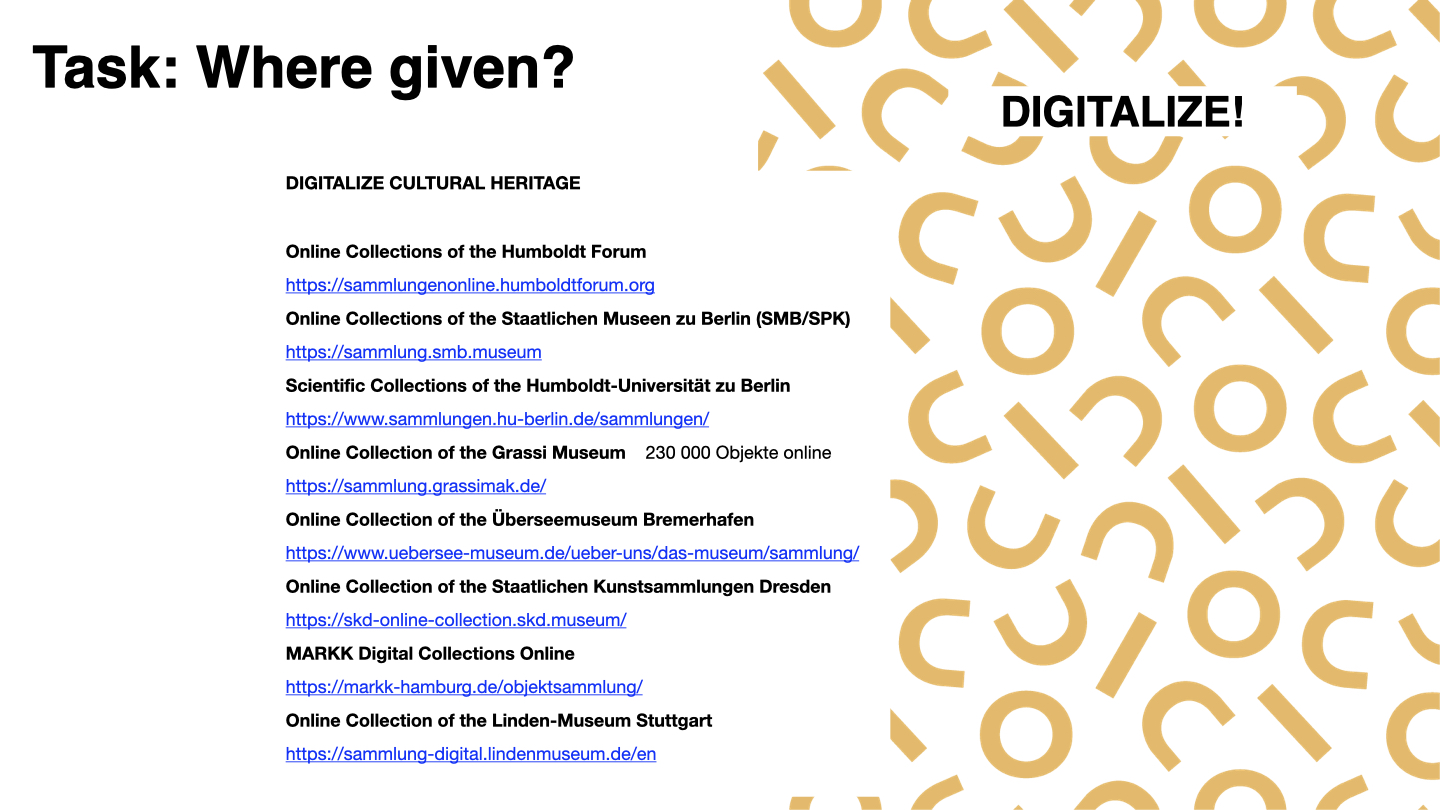 My name is Alan Prohm and the title of my talk today is: « Decolonizing Online Collections Displays: Historical Tasks and Lost(?) Opportunities of the Humboldt Forum »