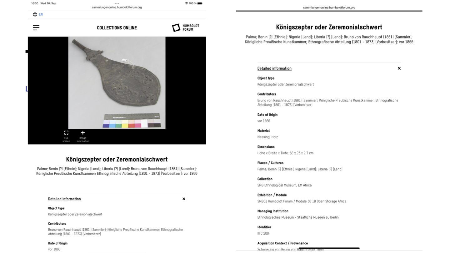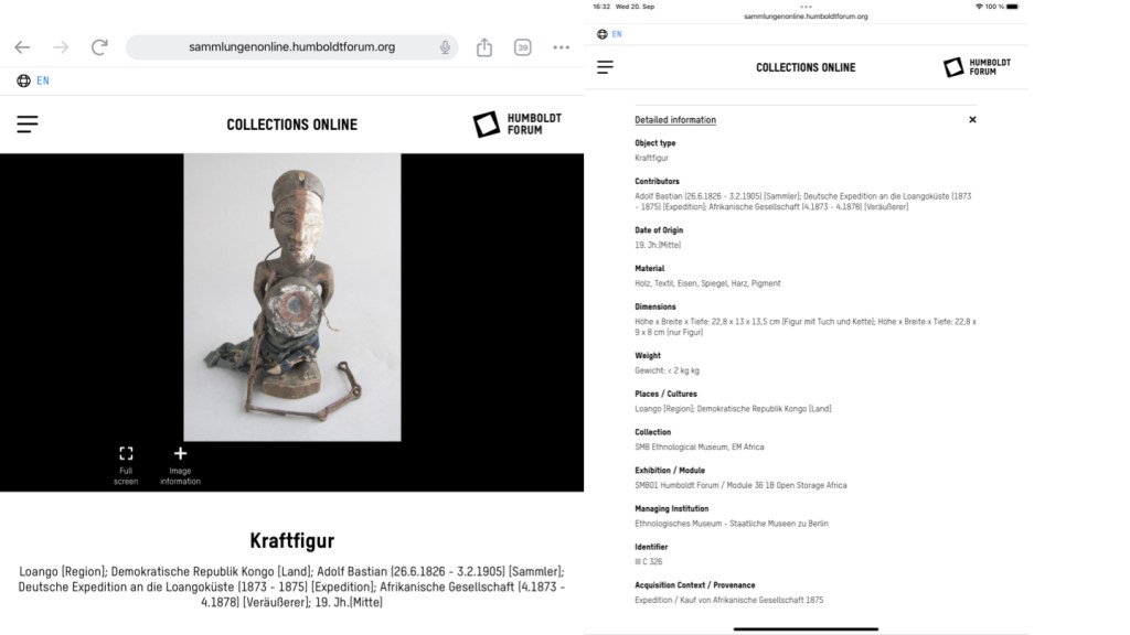 Now however, a platform for the online presentation of the collections exhibited in the Humboldt Forum has been produced and published. But how far did it go?