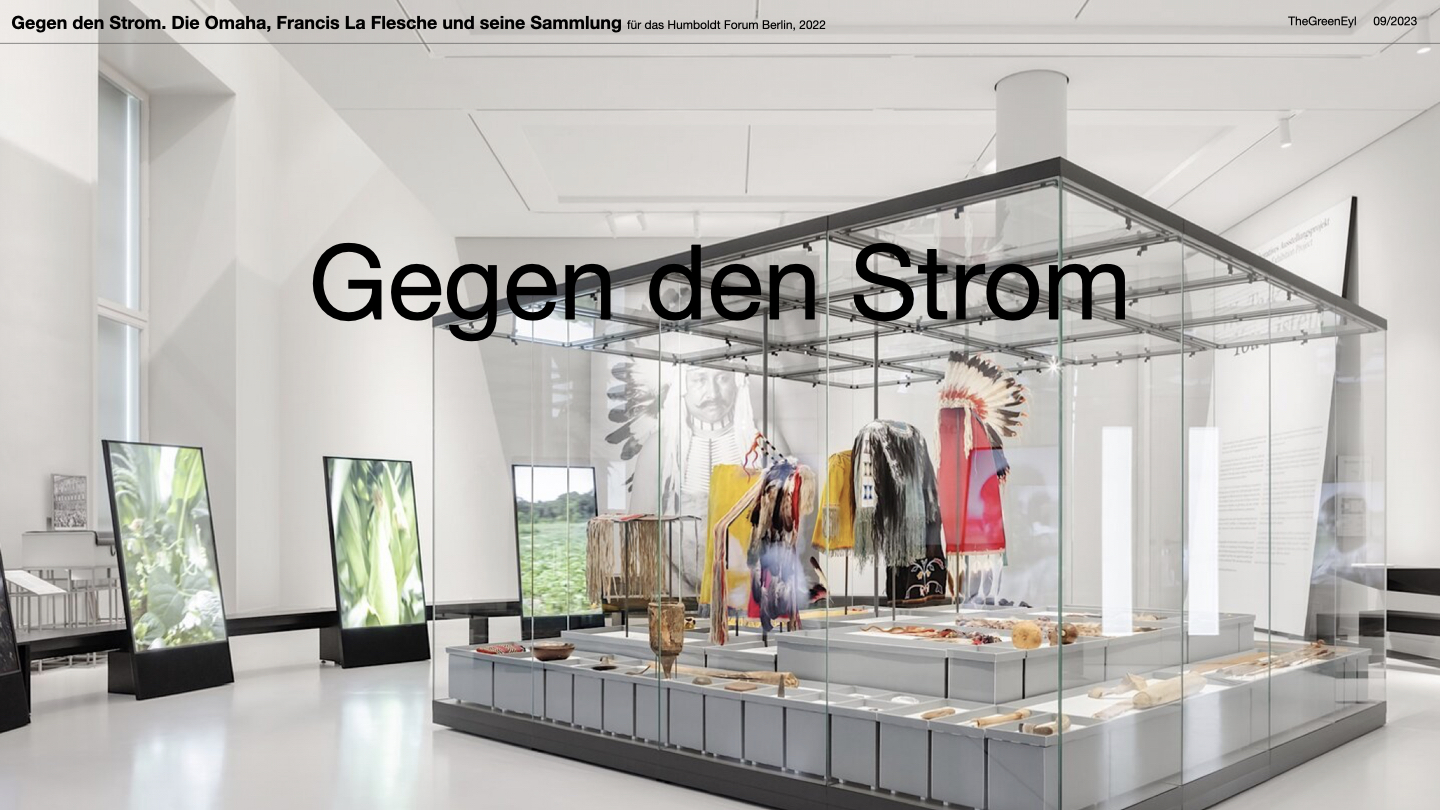 we are also dedicated to exploring continuities for already post- and anti-colonial collections displays and practices, like the LaFleche collection of the O’maha people, which TheGreenEyl designed for exhibition in temporary exhibition in the Humboldt Forum, and for which we see excited futures in digital forms evolved from the same spirit.
