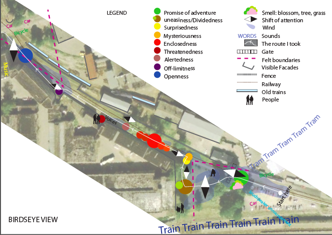Student works. Task: map narratives of affect at a chance-determined spot in the urban field.