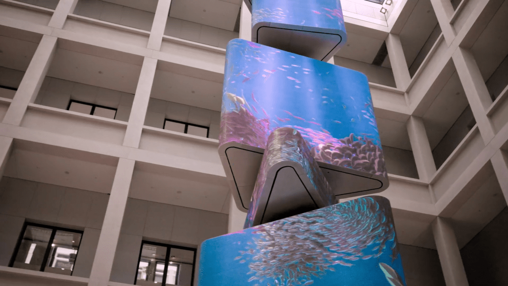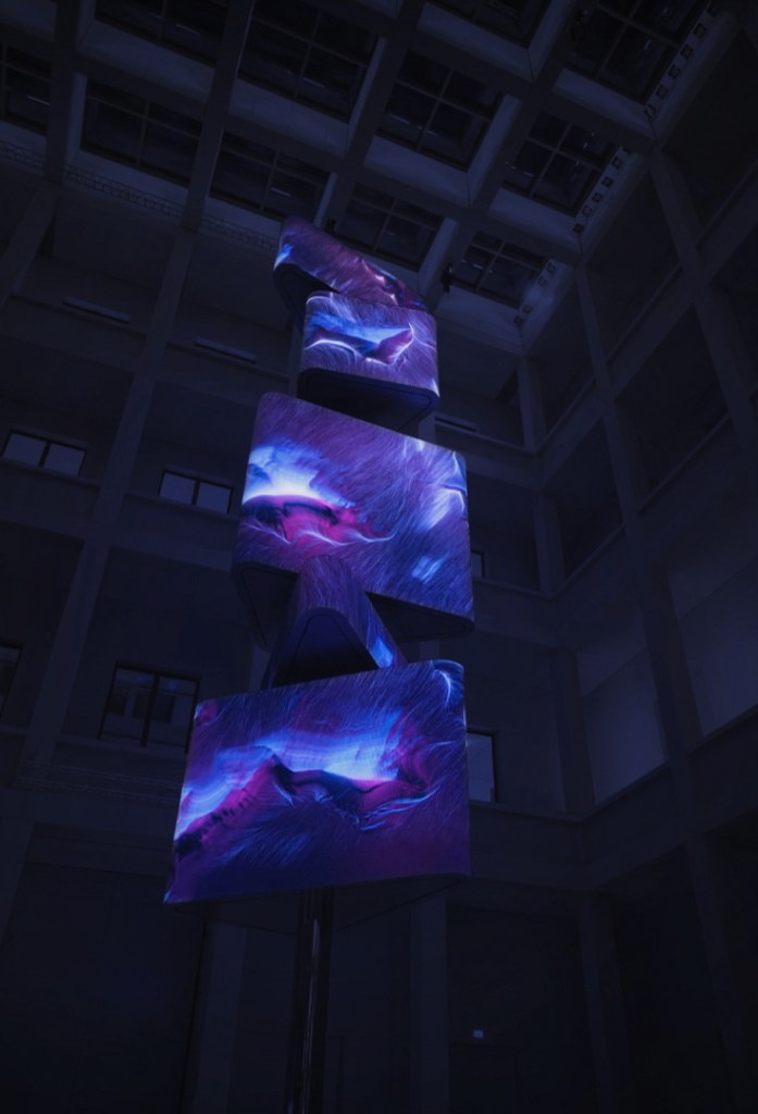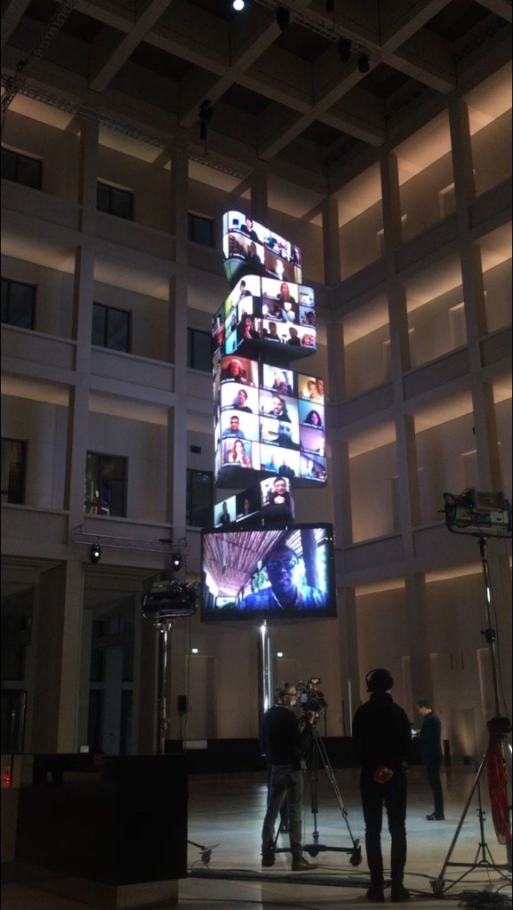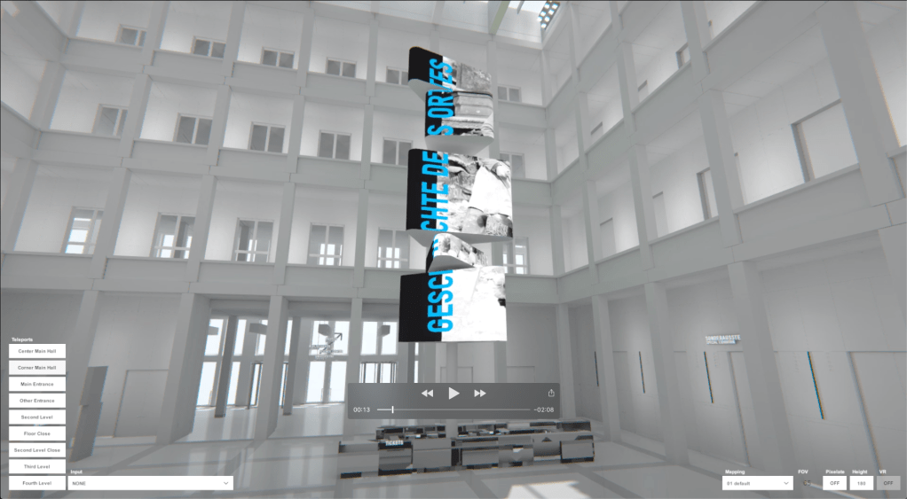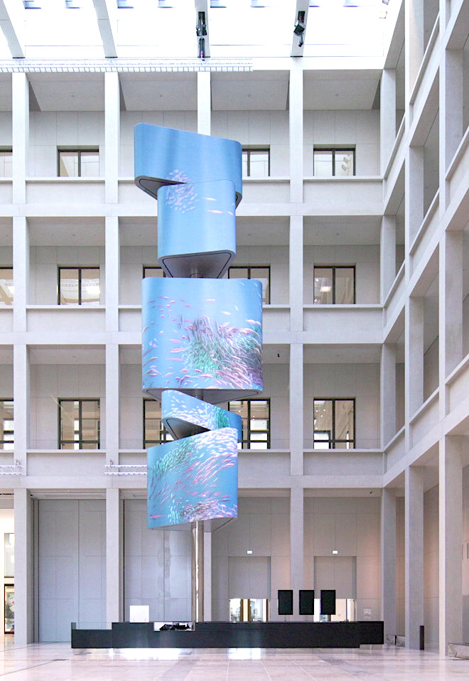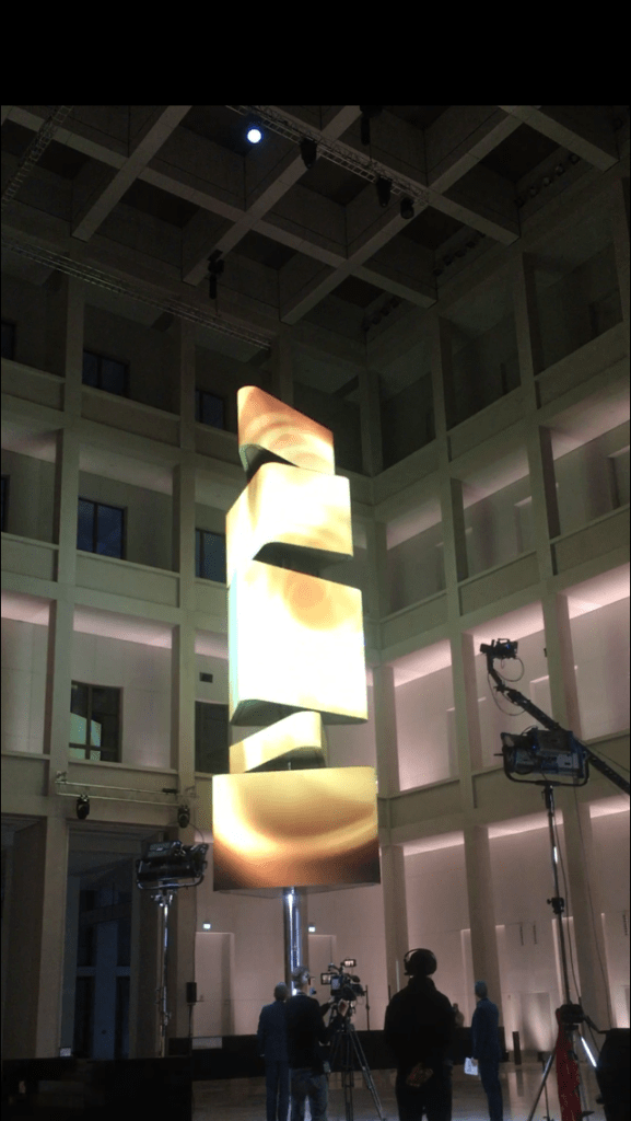 Content strategy, creative direction and project management on the project of a 25m high LED media tower in the central foyer of the Humboldt Forum. Idea and design for the LED structure by Holzer Kobler Architekturen. Initial content concept for the media tower delivered with the Humboldt Forum Media Concept of 2016 – project delivered for the digital opening 16.12.2020, with an initial content program of announcements and curated artworks, plus operations software and interface for scheduling and controlling content, ready for launch with the physical opening 20.07.2021.