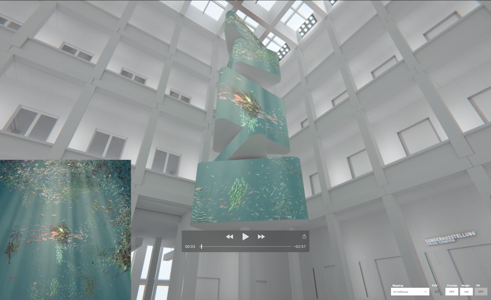 Working closely with Ali Hossaini, who provided a brand concept in 2018 and vital guidance on the technical implementation. Animations by Rafael Calleja, Lucius Fekonja and Felix Rasehorn, Jessica Palmer and Chloê Langehorn, Ansgar Bloyinski, and Andreas König of the Humboldt Forum digital department; generative artworks by Artificial Rome and schnellebuntebilder. Video hardware planning, programming and implementation by Intermediate Engineering.