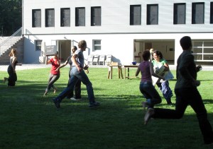 The BodyBuilding Project is a somatics-focused arts initiative to address the global climate crisis. Our aim is to evolve and deploy a mode of artistic address that will effectively speak urgent reason in the body’s language. During our residency at the Watermill Center (Sep. 2007), we conducted intensive conceptual-bodily research into themes of panic and inaction in the context of our current urgencies. From this we worked to fashion a new movement form (analogous to an issue-specific Tai Chi exercise or Yoga position) that will assist its practitioners in dissolving the barriers of rationalization and inhibition with a priceless new skill: the ability to activate human emergency response mechanisms on a voluntary basis.