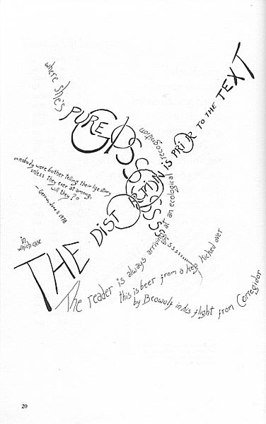 At a deeper level, visual poetry and visual poetics extend the mission of literary study in another direction. If the study of language and of the art that’s made with language has traditionally provided some of the profoundest insight into the nature of thought and human consciousness, visual poetics corresponds to the overcoming of a four-century bias embodied in those insights. The idea that thinking and reasoning are basically verbal/linguistic functions (more or less heightened or contaminated by emotion) is a prejudice that has had a lot of influence on what has been considered intelligence in Western cultures and on what culturally sanctioned intelligence has been used for. Visual poets since Mallarmé (1897) have been among the first to face the challenge of learning to think positively and creatively with the new spatialized and visually intensive “languages” of the modern mass media. In this sense they represent a progressive humanism whose project the academy and educational programs in the West have been slower to pick up.