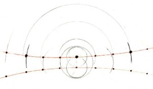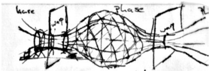 Time Structure: The left and right articulation of the warp, viewed down the axis of the loom, corresponds to the mirroring fields of retention and protention, in phenomenological theory what is held in working memory and what is projected into the future by expectation. A new item of awareness enters as a weft thread at the center of awareness and is sewn both into the receding log of what has just happened, and into the forward horizon of what might be coming. The design of the loom and of the interactions it invites will be tied in this way to the articulations of introspective psychology and phenomenological theory, reflecting for example the structure of time-consciousness discerned by thinkers such as Edmund Husserl, Francisco Varela and the ever-actual Abhidamma texts of esoteric Buddhism.