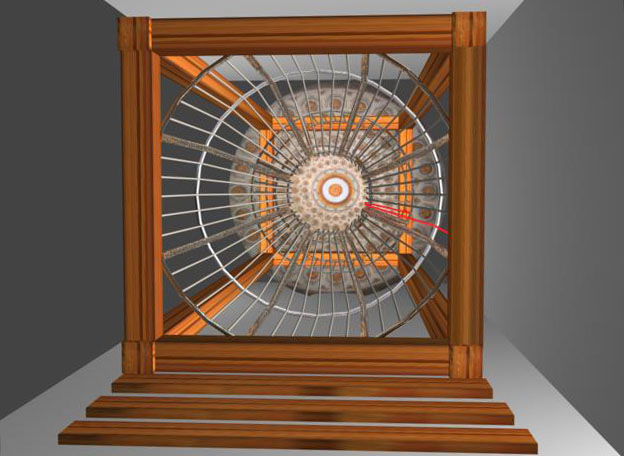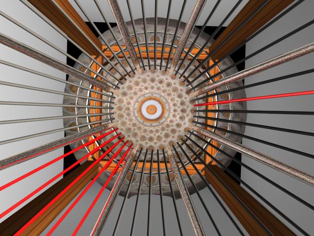 The Harness: Visitors will engage with the installation as a sculpture they can touch, pull, on, thread and climb. Instructions will be provided, and the structure will be labeled and prepared in ways making it intuitively handle-able, the way everyone would know how to do something with a spinning wheel. A special harness, equipped with thread leads, loop hooks, guy lines, and spooled thread, will be hung at the entrance to the space where the loom has been constructed. Putting it on will equip the visitor to link-up to the structure as him- or herself the “shuttle” or “weaving ship” who will do the weaving. Whether or not the user projects any particular thinking or emotional linkage into their interaction with the structure, the materiality of the strung construction and the harness will intitiate its own kind of dialogue with the visitor’s body. When there is projection, this dialogue will anchor higher-level (emotional, intellectual) processes through strong and clear kinaesthetic/tactile feedback into the body of the moving user. Eventually this muscular and skeletal engagement with the structure can come to replace the explicit tracking and thinking with which the interaction began. As the body continues to move without thinking, the thinking goes on unconsciously, but in observable actions. Here it may begin to be possible to work through problems that require our most intelligent attention, but that cannot be trusted to the mind and its abstractions.