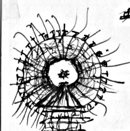 Mental Effort: Interacting with the structure will require physical activities, (reaching, pulling, threading, tying, twining etc) that correspond metaphorically to mental functions. Making a connection or a distinction, pursuing a line of reasoning, untying an emotional knot, projecting, thinking back, making a break, all become concrete gestures which can be performed with greater or lesser degrees of consciousness, and greater or lesser chances at magical efficacy. On the one hand the Tubular Loom is intended as a body-scale version of the meditational diagrams and devices used by early Christian and earlier Buddhist mystics. On the other hand it is a more near-at-hand version of the memory theaters imagined and constructed by Renaissance magi for mastering the mind through its architectural allegorization. The Tubular Loom is not an aide for recalling distant things, but rather for holding the vast fabric of consciousness’s immediate materials, and working through its tissue for insights and resolution. At a higher level of use, the detailed metaphorics of the construction can be forgotten, and the threads handled intuitively and by heart. If the esoteric guess behind this project is right, the dull material symbols may link for real to the vital inner life, and the Loom at last offer its users a concrete grasp of the hidden universe of their psyches. As one Pr. Pear wrote in 1923, “If the discovery of the psychological nature of meaning were completely successful, it might put an end to psychology altogether.